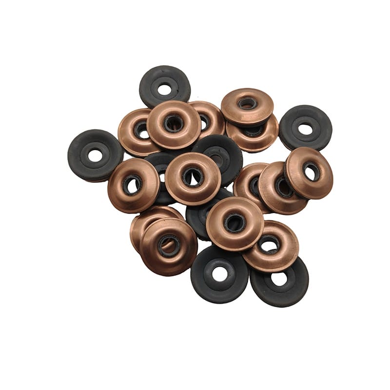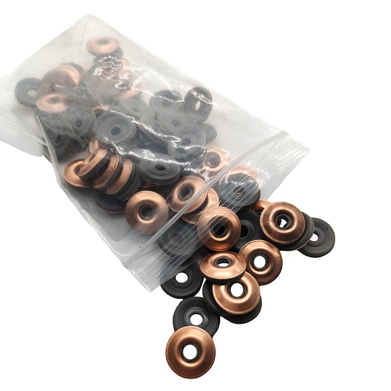 Nuestras arandelas adhesivas termofusibles de cobre están hechas de cobre y caucho y tienen un diámetro interior de 4 mm y un diámetro exterior disponible en 15 mm o 19 mm. Sirven como componente de sellado de uso común. Pulimos la superficie para eliminar capas de oxidación antes de aplicar el recubrimiento adhesivo termofusible. Nuestros productos proporcionan un sellado a prueba de fugas, resisten altas temperaturas y corrosión y funcionan de manera confiable en ambientes extremos. Además, las arandelas adhesivas termofusibles de cobre ofrecen una excelente conductividad eléctrica y térmica y son fáciles de instalar. Las arandelas adhesivas termofusibles de cobre se utilizan ampliamente en la fabricación de automóviles, generación de energía y equipos electrónicos. Por lo general, se utilizan para sellar, conectar y brindar protección contra el polvo y la humedad.