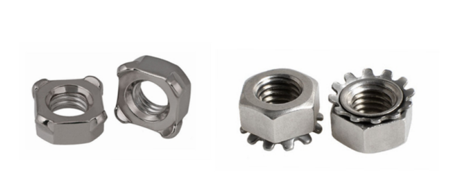 3. Tuercas soldadas: Las tuercas soldadas se dividen en tipos cuadrados y hexagonales. Estas tuercas tienen varios puntos de soldadura en la parte inferior; tras su instalación se sueldan para conseguir una sujeción muy segura.